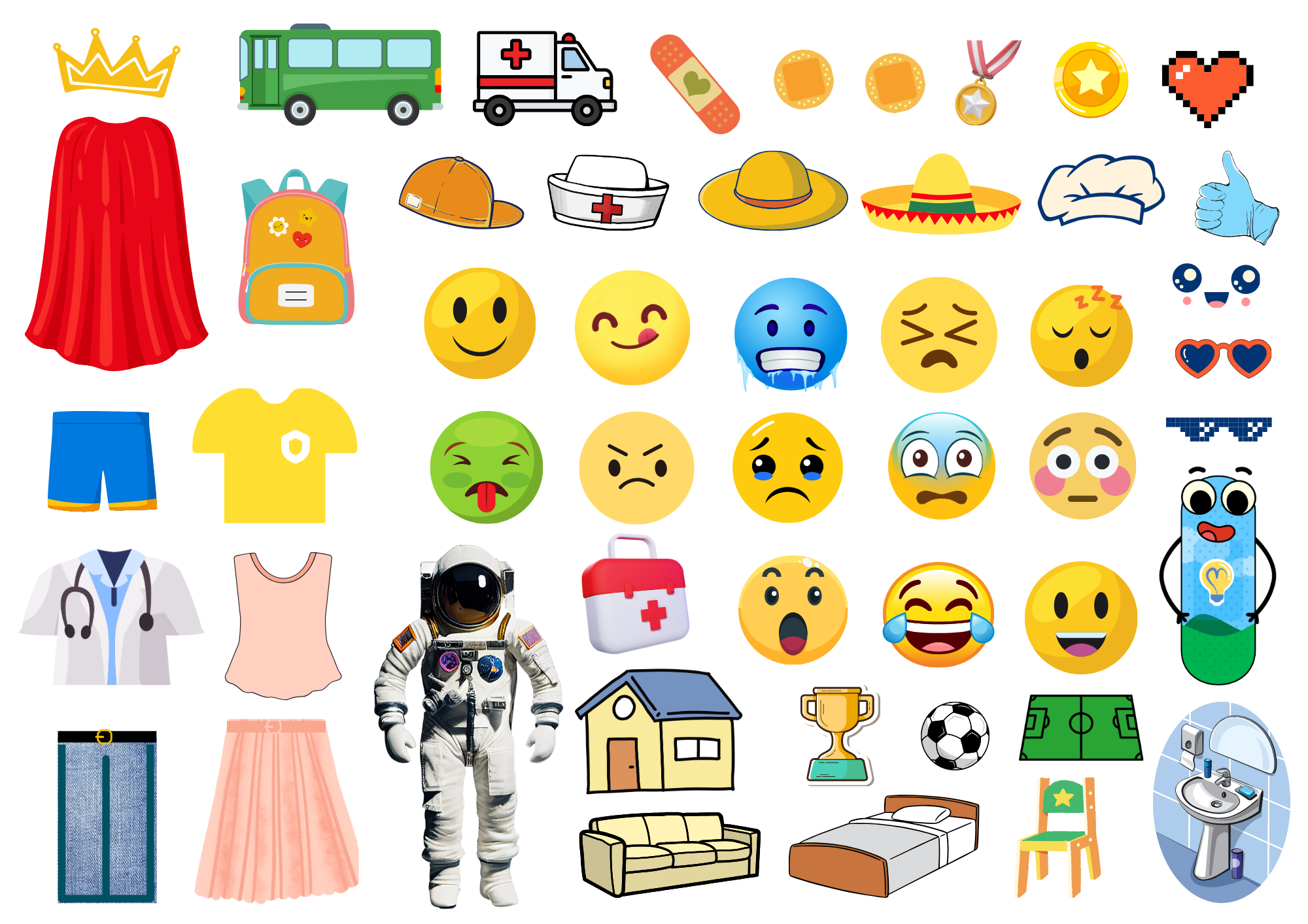 • Meu Personagem Personalizável: uma página destacável com adesivos de expressões, roupas, lugares e até curativos para mostrar “onde dói”. Uma brincadeira que revela muito sobre o mundo interno da criança.
